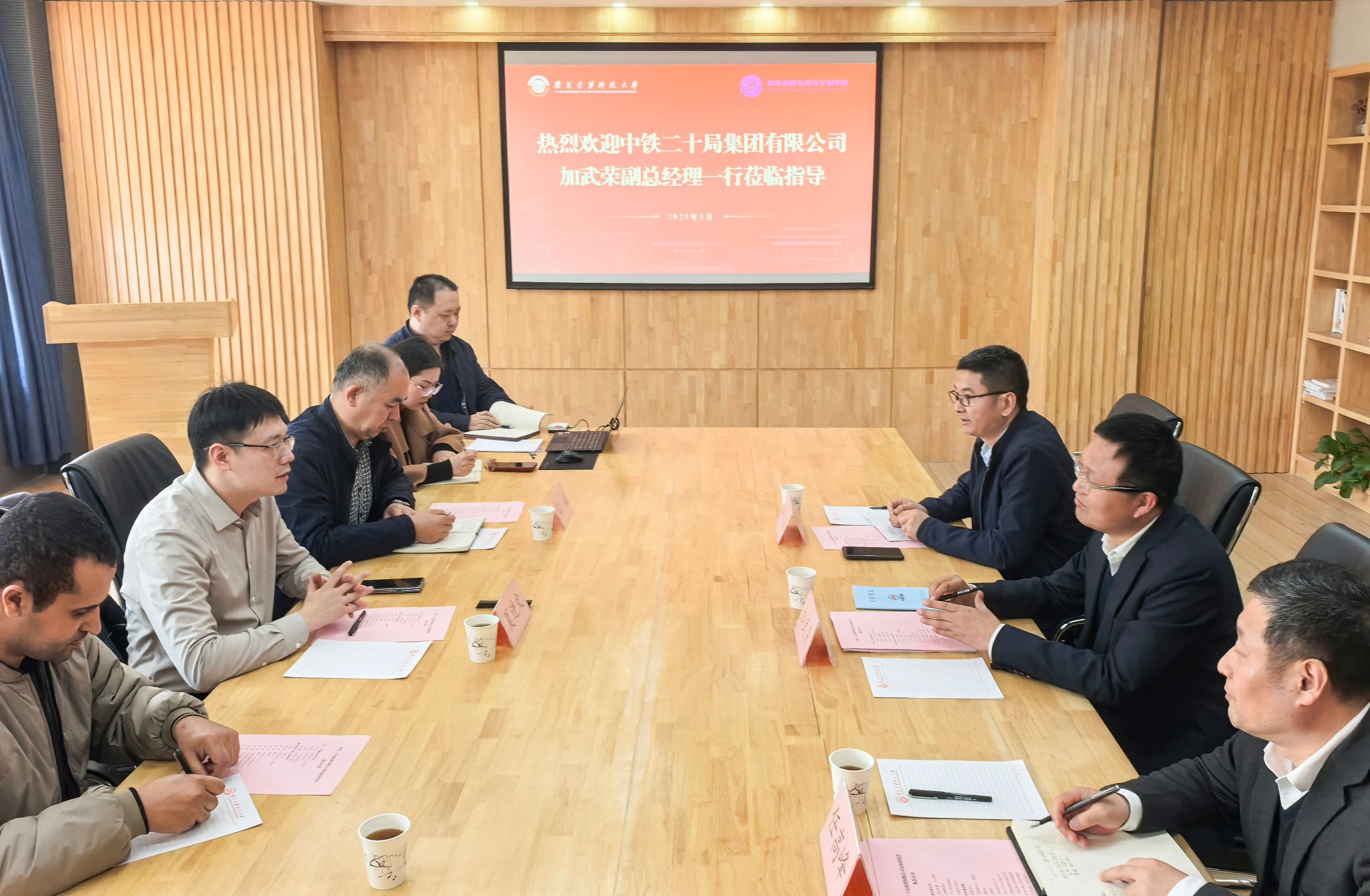 3月21日下午,中铁二十局集团有限公司副总经理、总工程师加武荣、产业研究院院长任高峰、科数部副部长胡计高等一行到访我院并座谈交流。快猫短视频 党委书记夏进文、副院长...