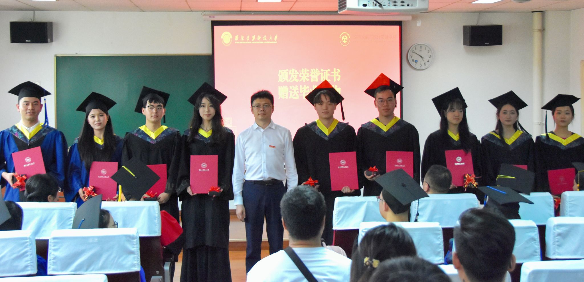 学院党委书记夏进文宣读优秀毕业生表彰名单,为毕业生代表颁发学院纪念品,副院长王凯为毕业生校友联络员颁发证书。