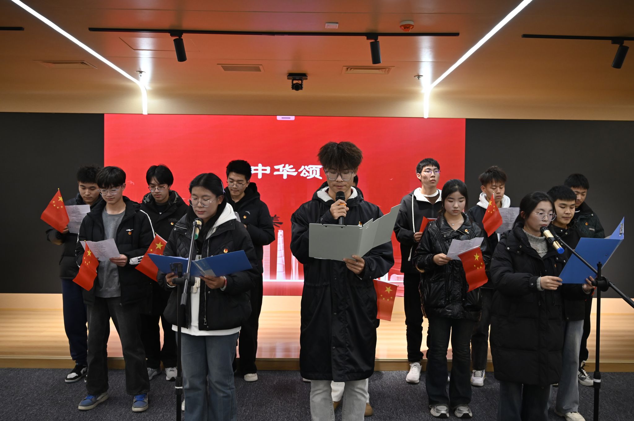 活动现场,六首热血红歌引领我们穿越时空,《东方之珠》让我们感受到港澳回归时的盛大与激情;《我爱你中国》让我们聆听到祖国的呼唤与期待;《紫荆花盛开》体现了我们对香港的热爱与祝福;《我和我的祖国》歌唱出我们对祖国的热爱与赞扬;《错位时空》则让我们感受到五四青年的激情与豪迈。这些悠扬的旋律唱出那份永不磨灭的精神。