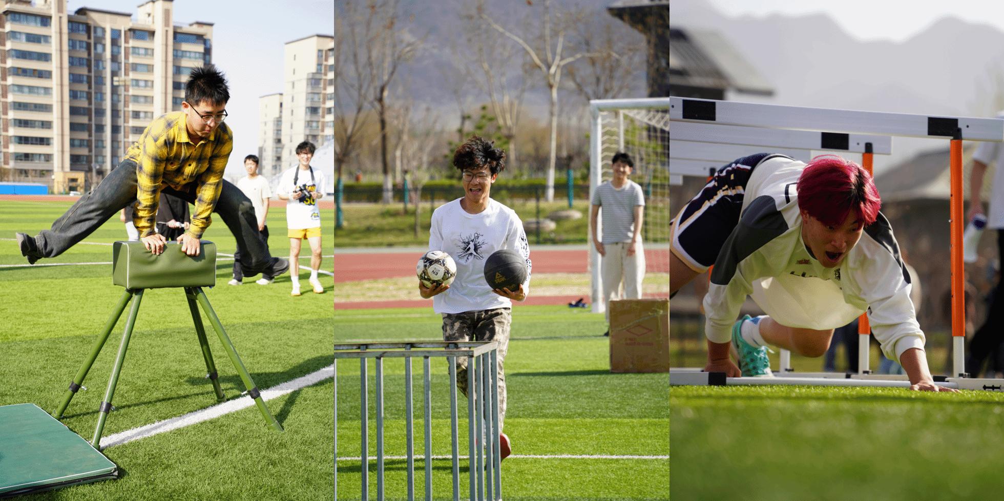 障碍赛是跳马、匍匐前进、抱球运输三个小游戏组成的闭环充满挑战,各班参赛人员依照规则,灵活穿梭通过各个关卡。同学们争分夺秒,展现出敏捷的身手和顽强的毅力。